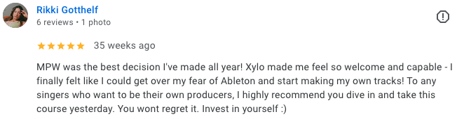 MPW has over 500 Five-Star Google reviews describing its high quality workshops, supportive community and heart-warming networking opportunities designed specifically to empower women in music production.